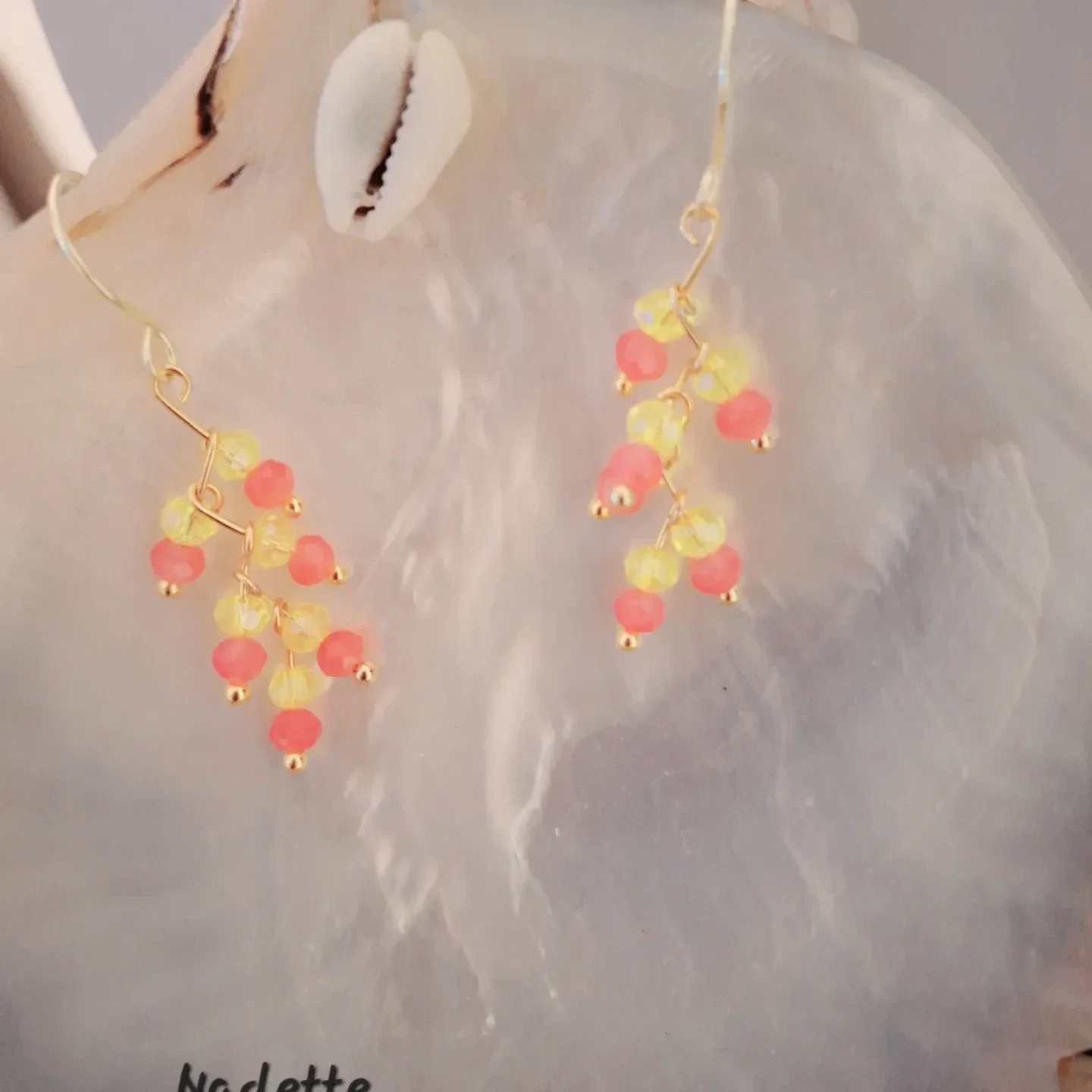 Boucles d'oreille acier inoxydable doré et cuivré, petite perles en verre 3 mm