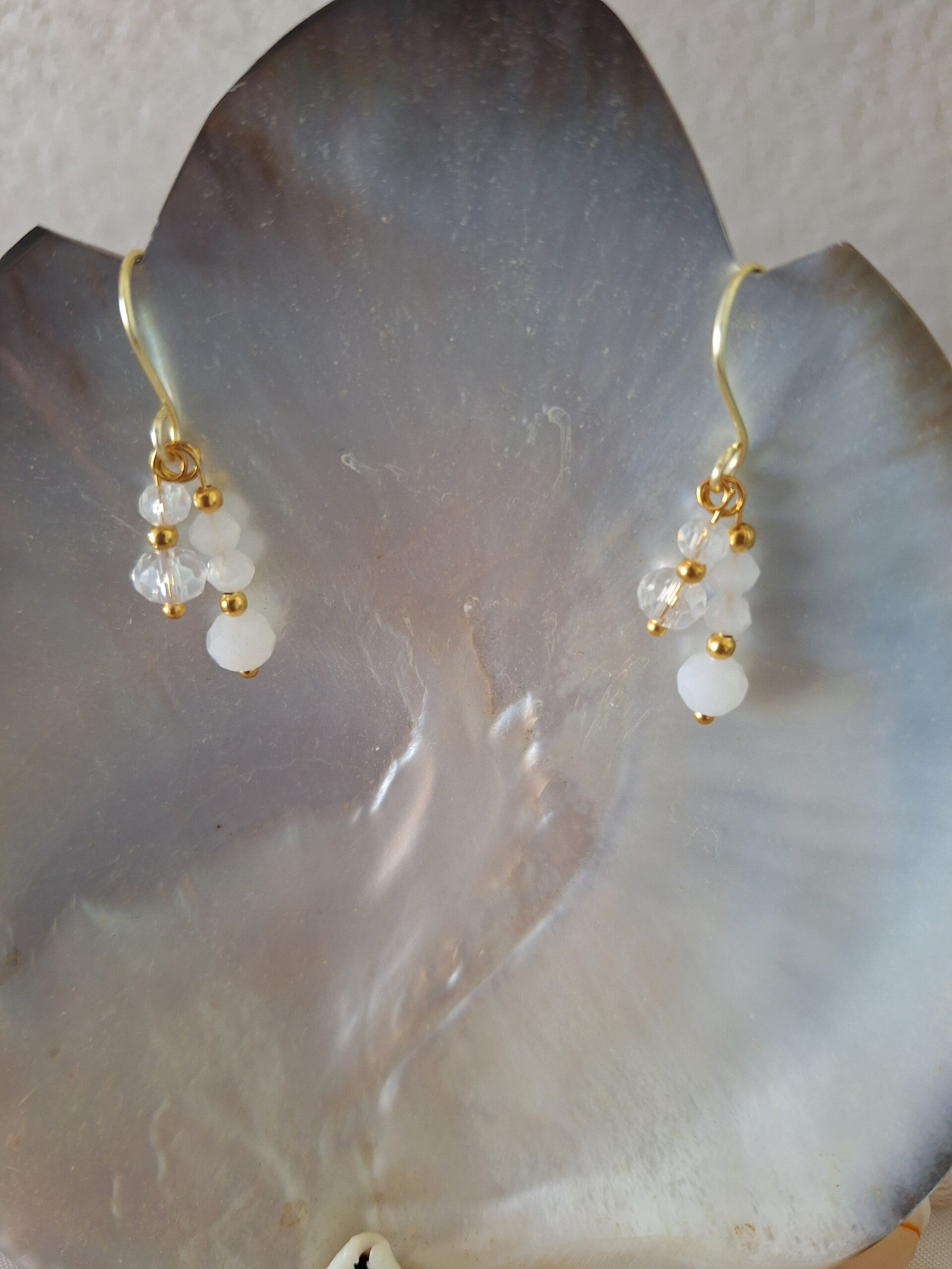 Boucle d'oreille acier inoxydable doré, et cuivre , perles en verre 4/3m, perles dorée de 2mm