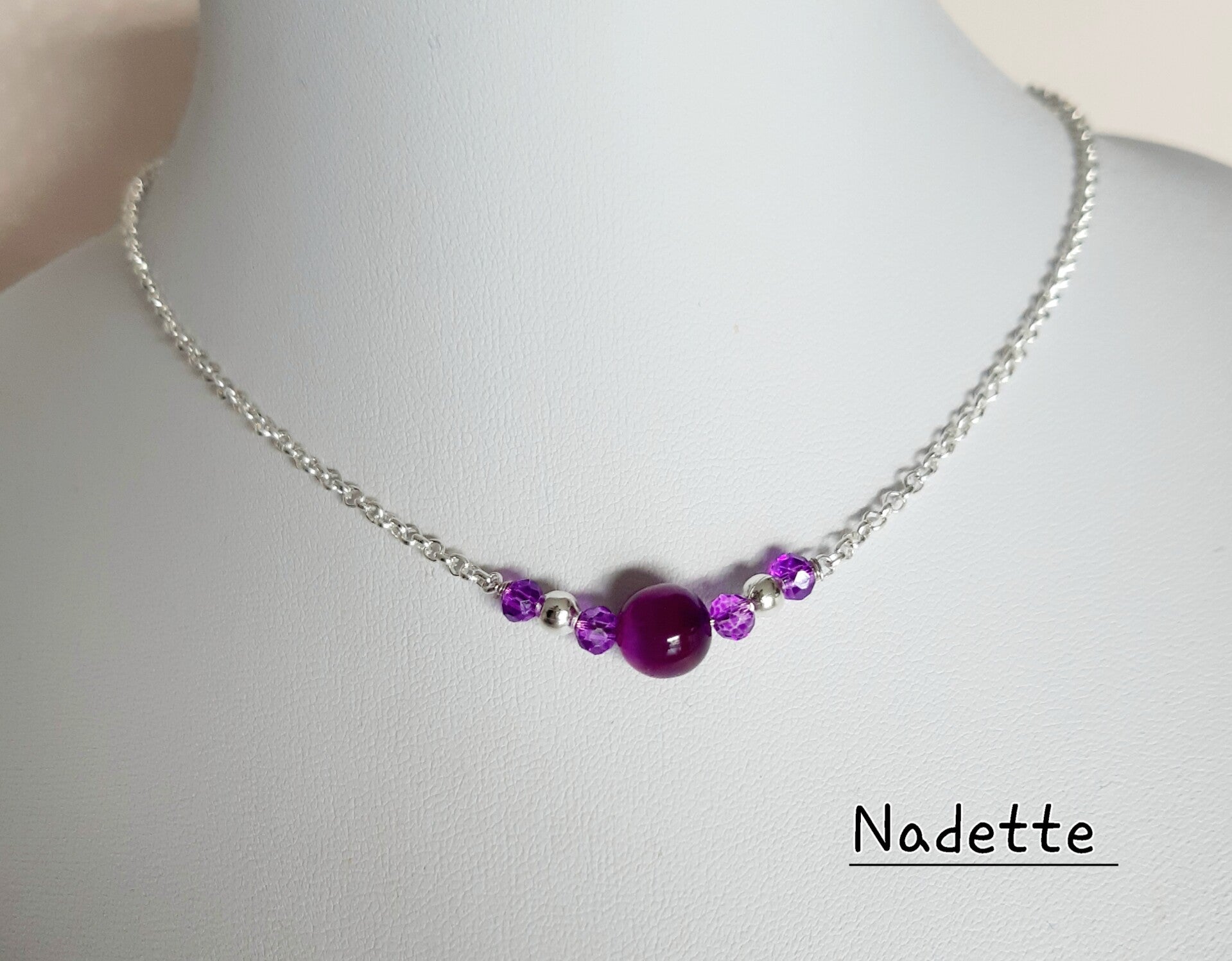 Collier acier inoxydable argenté/ Perle semi precieuse & verre 8/3