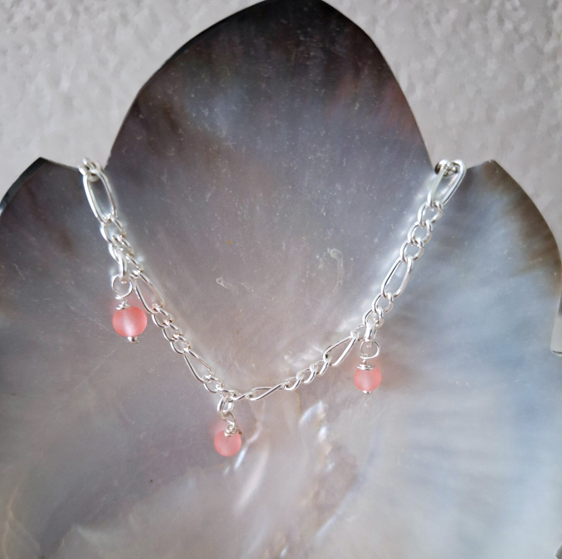 Bracelet ,acier inoxydable argenté/perle verre 3mm