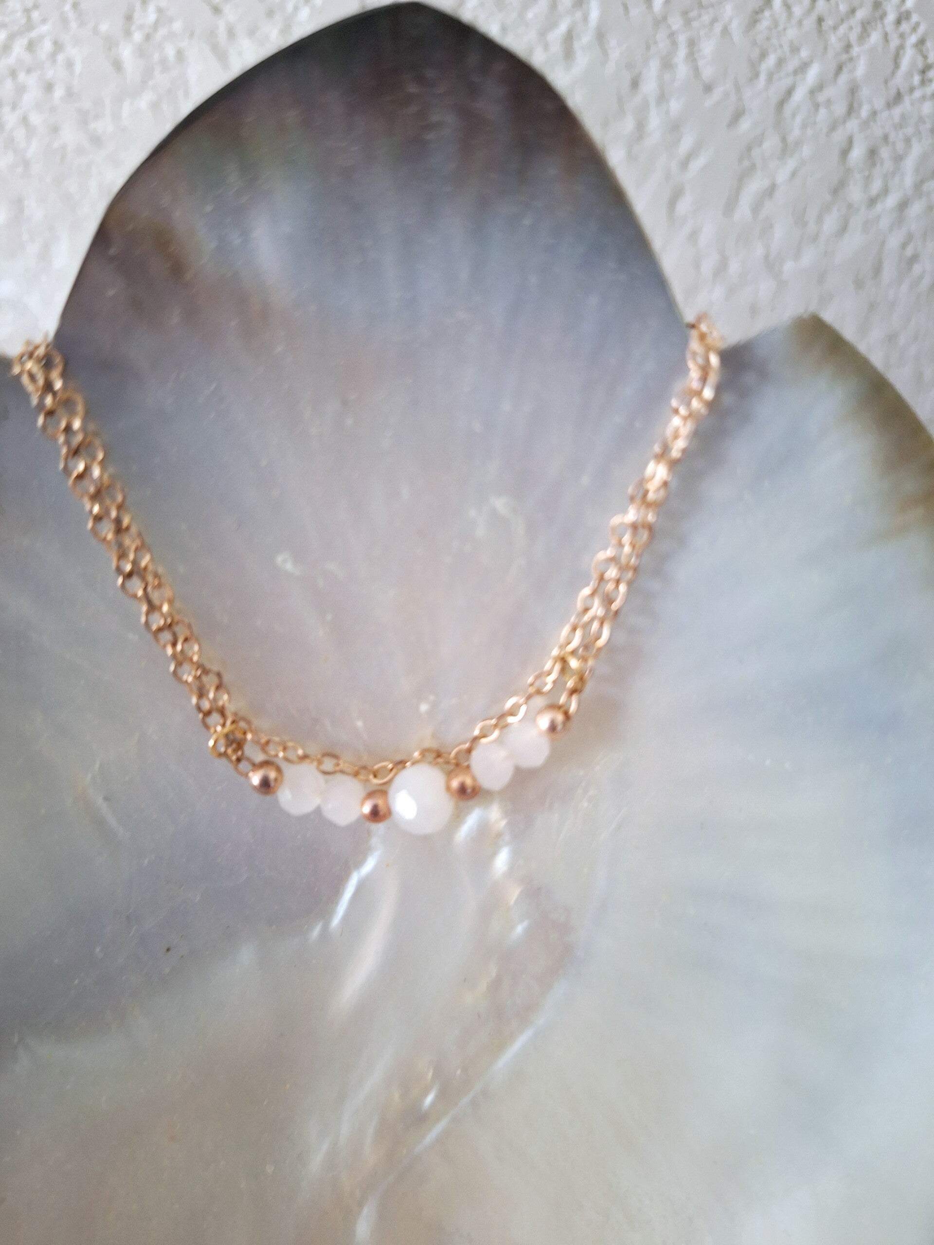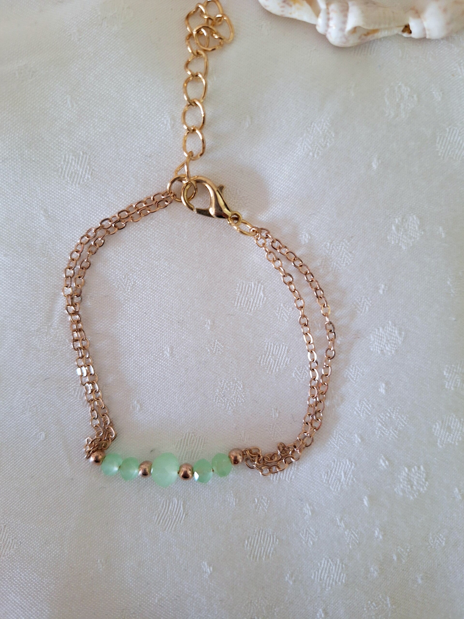 Bracelet aicier inoxydable doré/Perles en verre 6/3 mm
