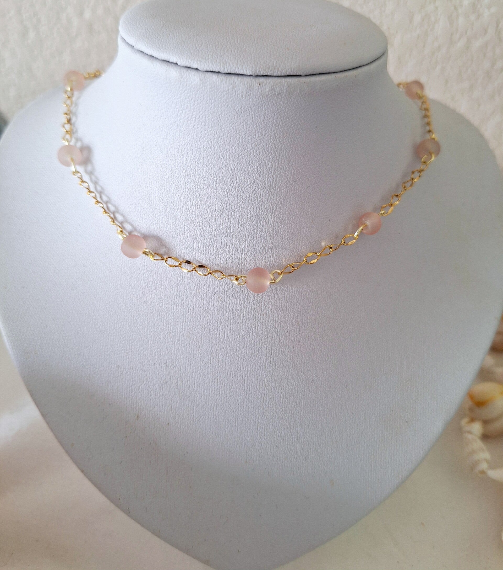 Collier aicier inoxydable doré /Perles en verre/6 mm