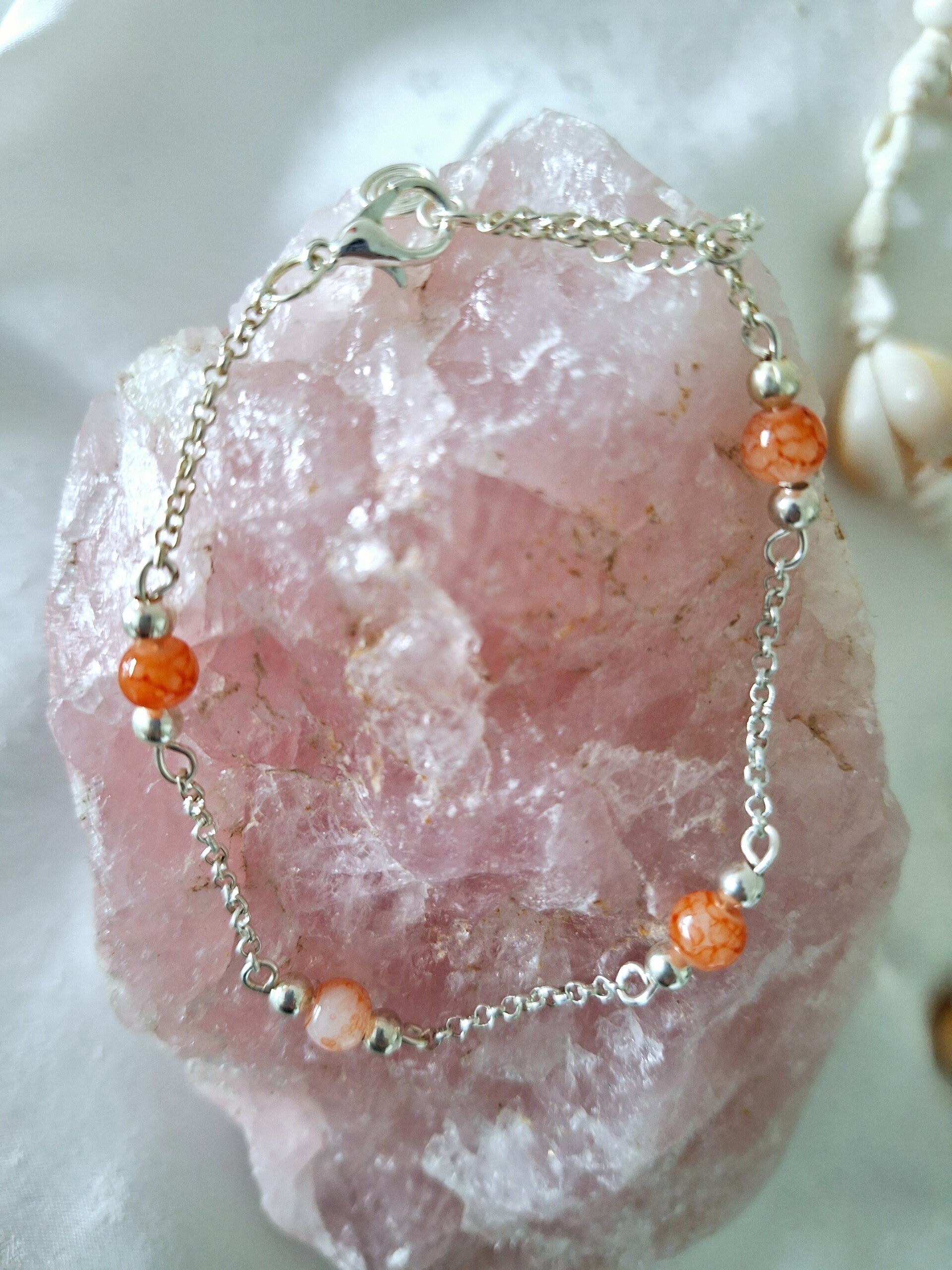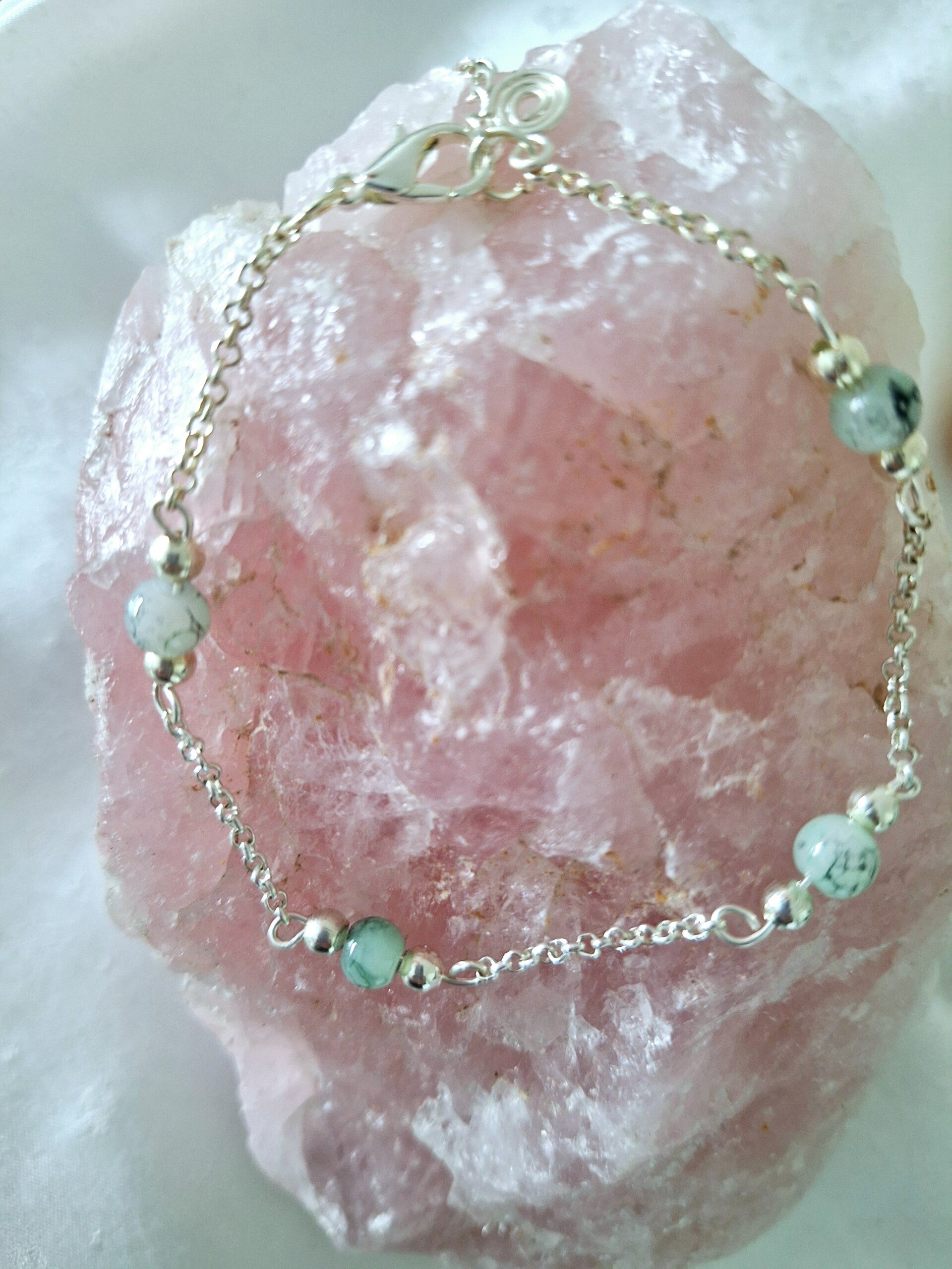 Bracelet aicier inoxydable argenté/Perles en verre/6 mm perles argenté 2mm