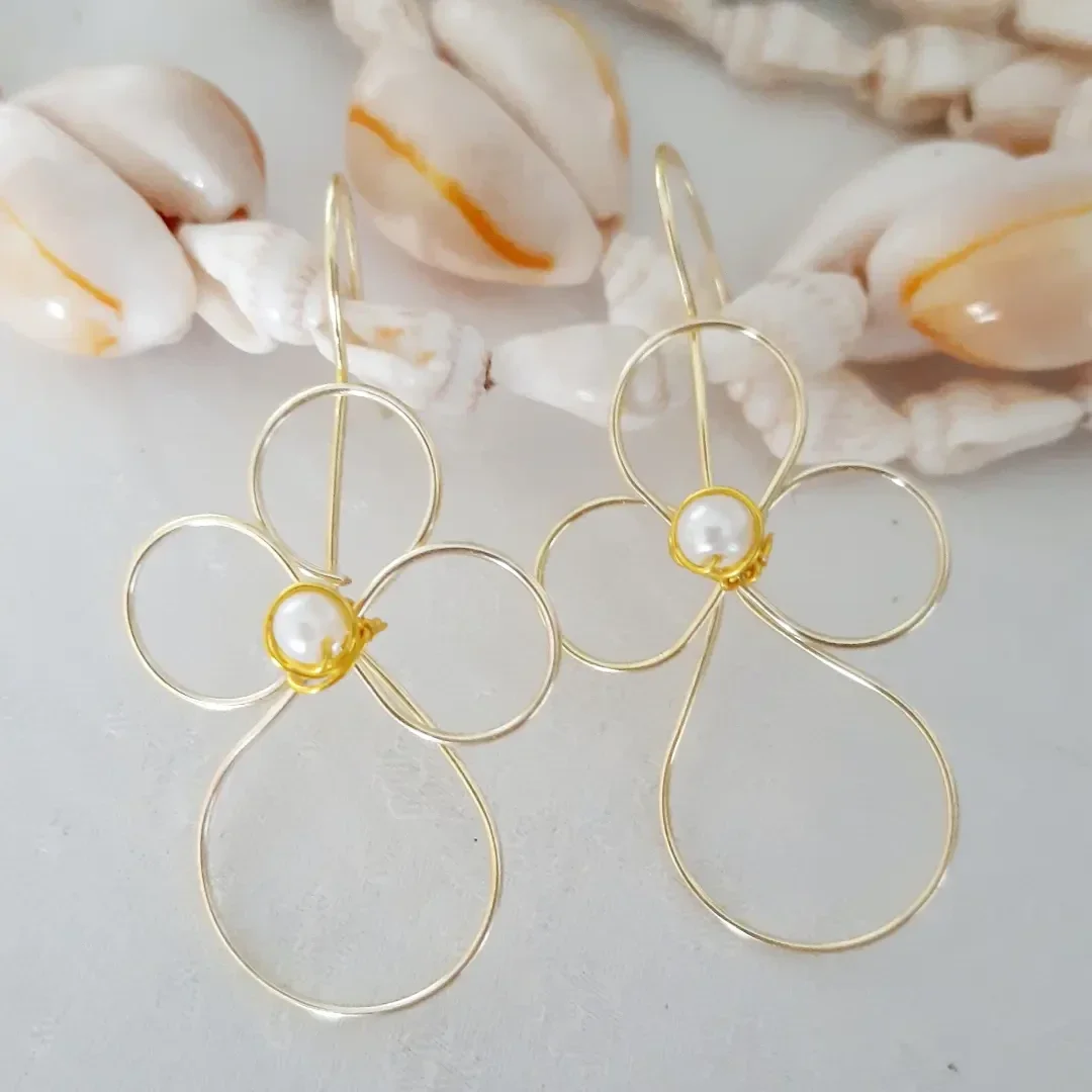 Boucle d'oreille acier inoxydable/ doré / perle imitation nacre 3mm